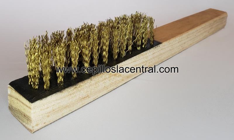 Cepillo Manual tipo Herrero Cepillos industriales utilizados para limpieza de todo tipo de superficies.Caracteristicas: Cepillo base de madera de 28 cm de largo x 30 mm de ancho, fibras de latón ondulado 4 x12. * SOBRE PEDIDO: fabricamos en filamentos de laton ondulado, acero, cerda natural o Ixtle, sobre base de plástico o aluminio.*Solicita tu cotizacion aqui, seleccionando la cantidad y medida requerida o la opción PEDIDO para medidas especiales.